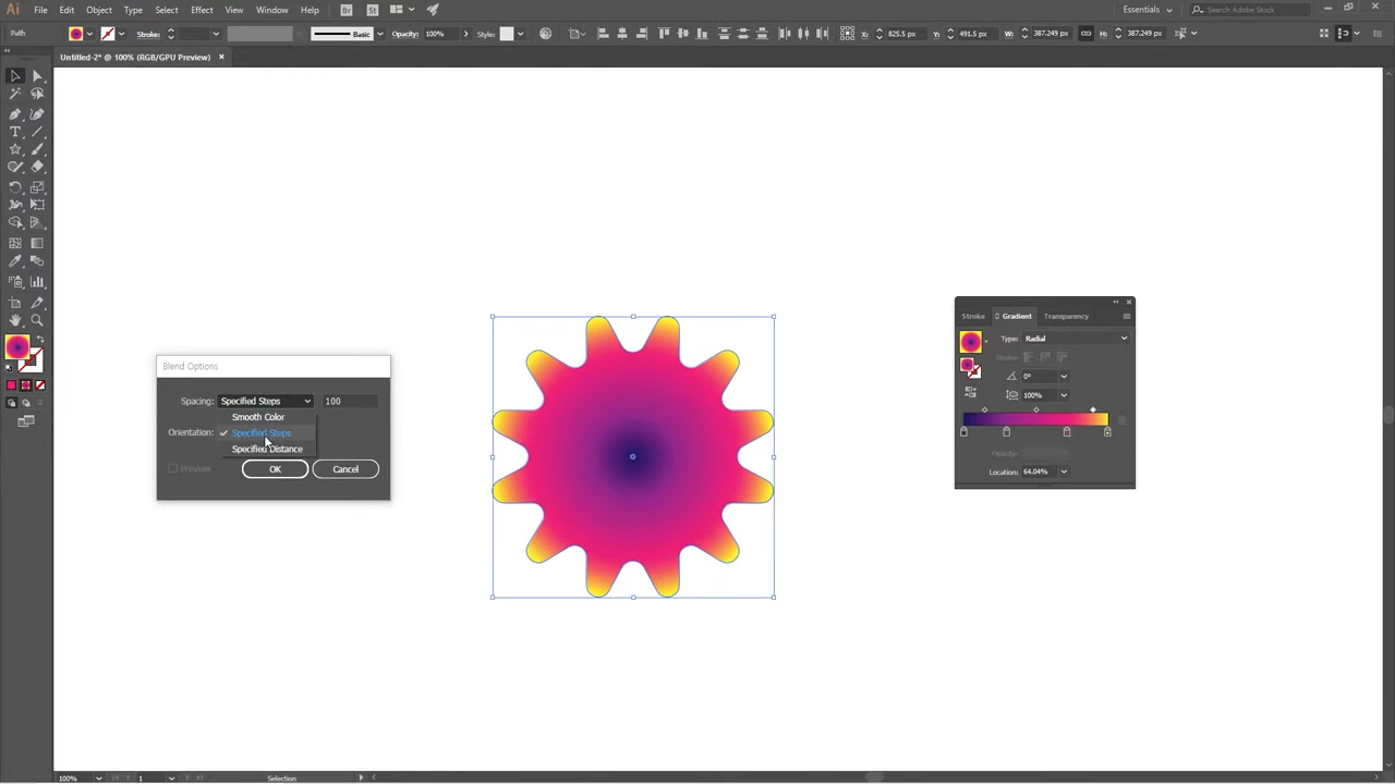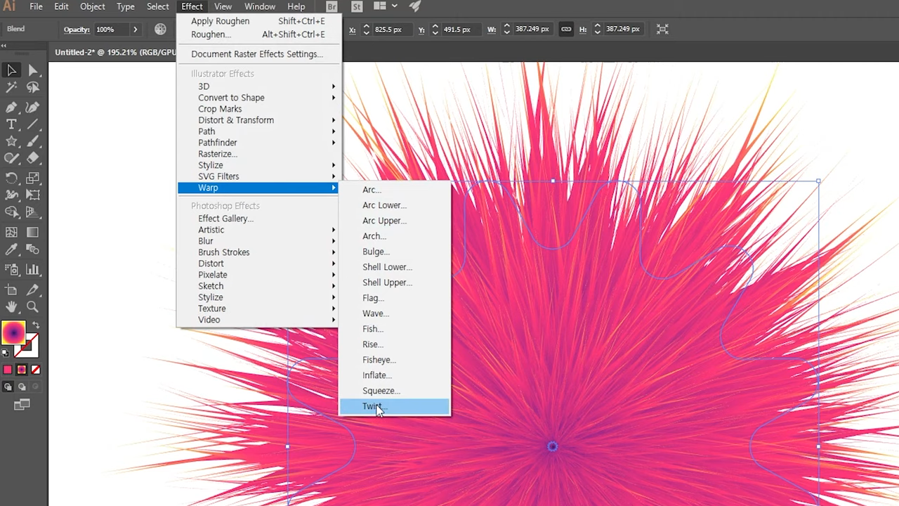 오브젝트 > 블렌드 옵션을 활용