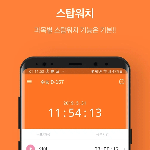 내가 공부를 얼마나 하고 있는지 어떻게 하고 있는지를 기록하고 관리해주는 시관관리 앱 입니다.