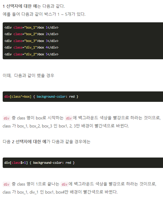 1. 선택자[속성^=값] : 속성 안의 값이 특정 값으로 시작하는 태그를 선택